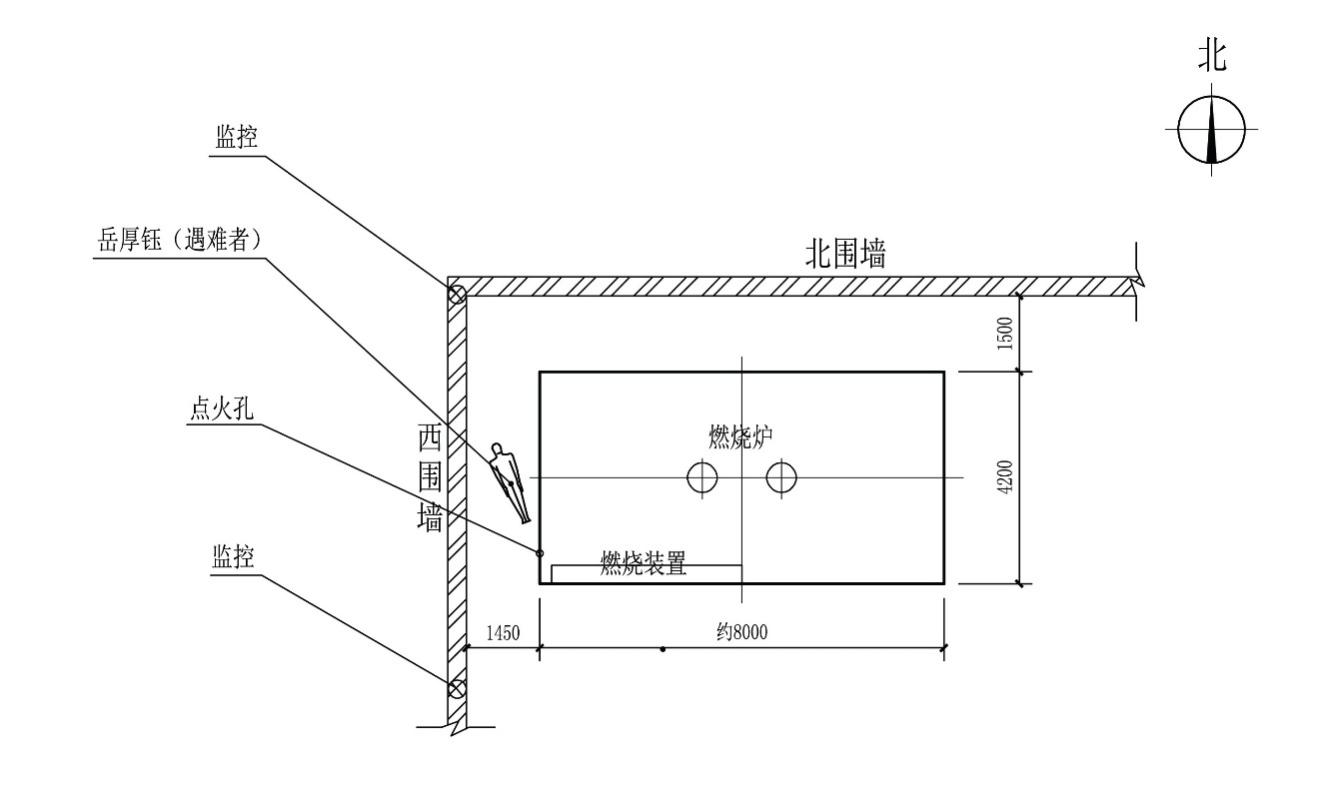 15時17分許,岳厚鈺開三輪車到燃燒室東墻外停好車,隨后走到燃燒室西墻外點火口,李佩玻從院內跟著岳厚鈺朝點火口處走過去。當時,岳厚鈺彎腰在點火口處,李佩玻剛走到燃燒室西墻附近,突然燃燒室墻體向外崩塌,將岳厚鈺壓在倒塌的墻體下面。