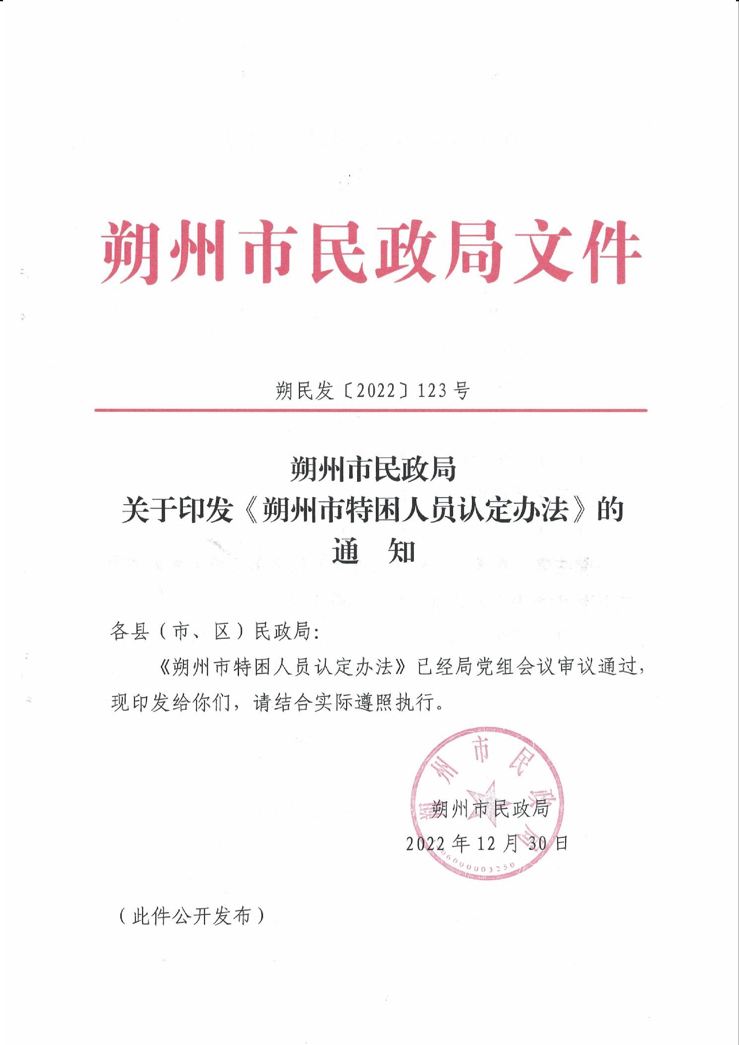 朔州市民政局關于印發《朔州市特困人員認定辦法》的通知
